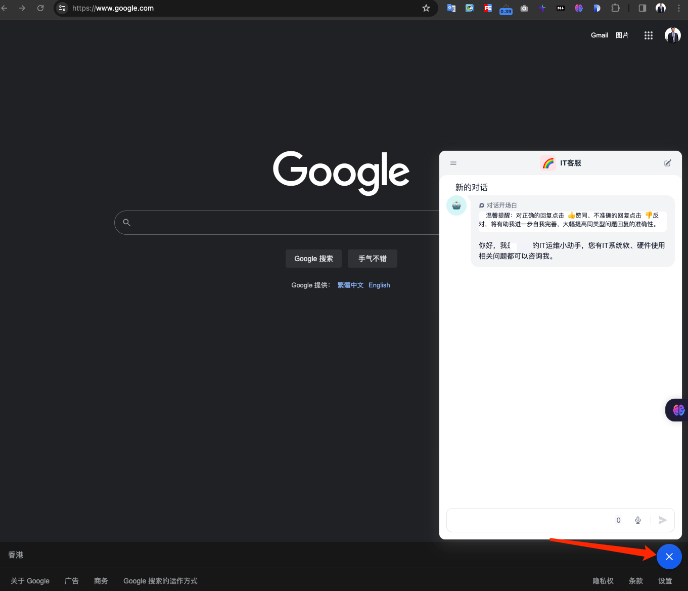 | 4、Chrome打开任意页面均可正常加载DIfy机器人浮动栏,后续如需更换机器人只需要变更Token即可; | |||