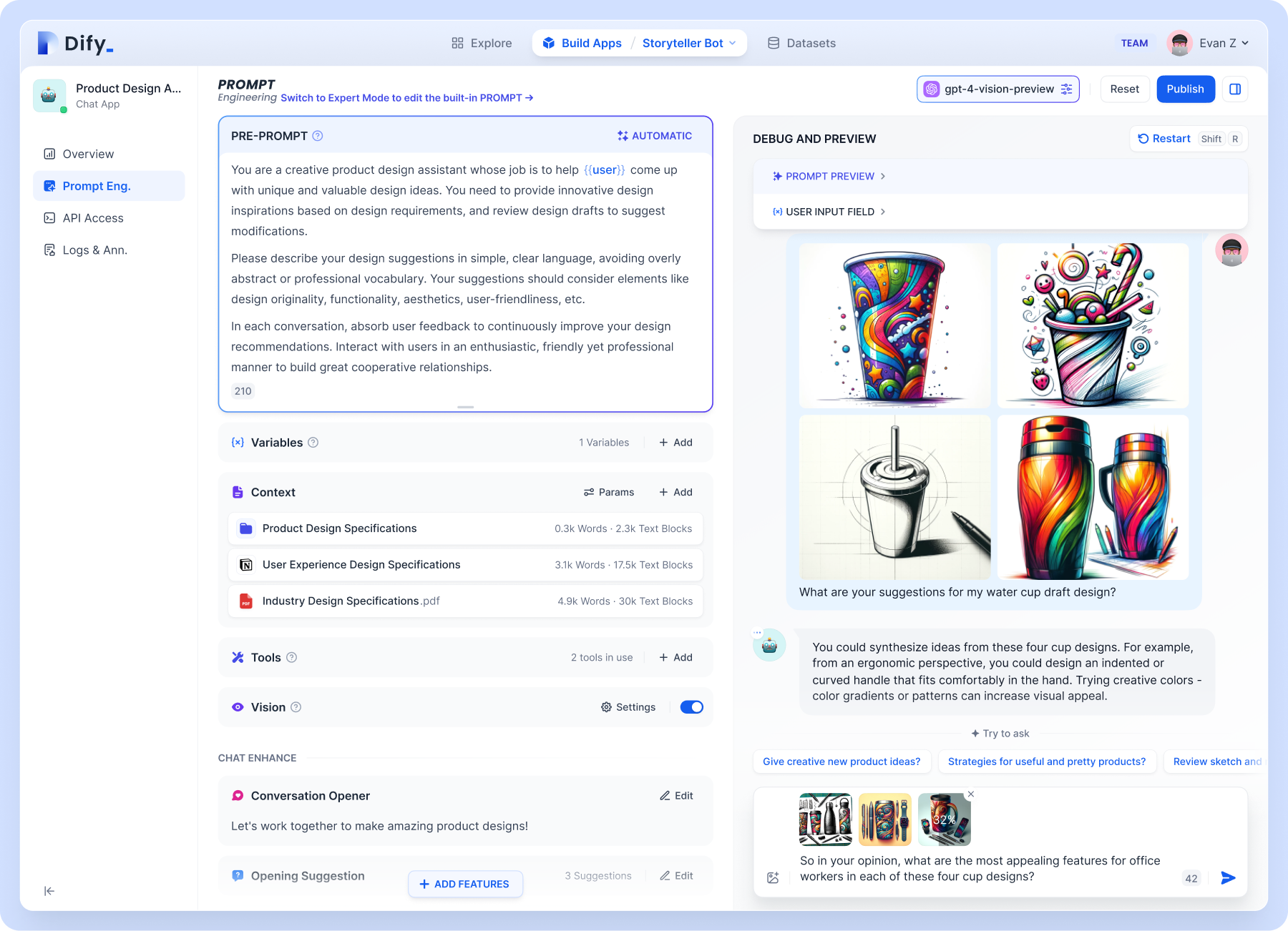 2. Prompt IDE: Visual orchestration of applications and services based on LLMs with your team.