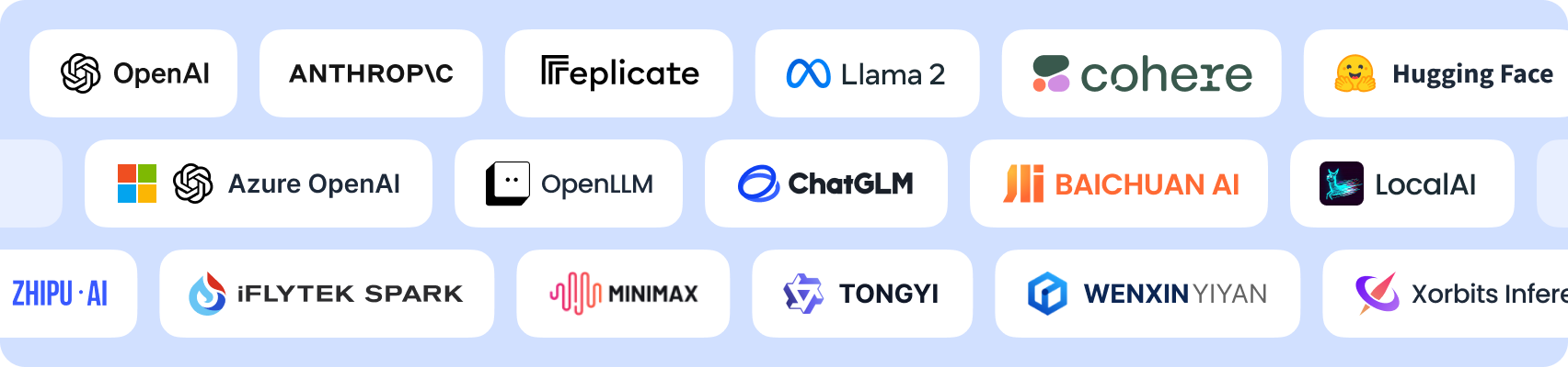 1. LLM Support: Integration with OpenAI’s GPT family of models, or the open-source Llama2 family models. In fact, Dify supports mainstream commercial models and open-source models (locally deployed or based on MaaS).